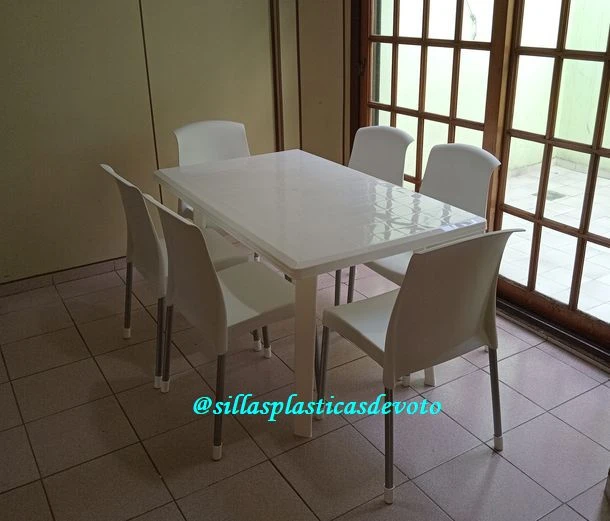 😀JUEGO DE COCINA 6 SILLAS PLASTICAS GALANA y MESA PLASTICSA PATAS DESMONTABLES 1,4x0,80