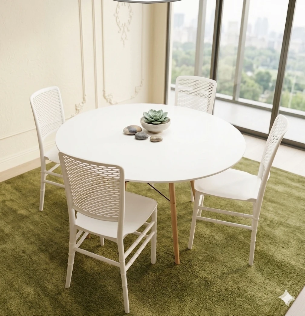 😃JUEGO DE MESA REDONDA 1,20 LAQUEADA. MAS 4 SILLAS PRINCE